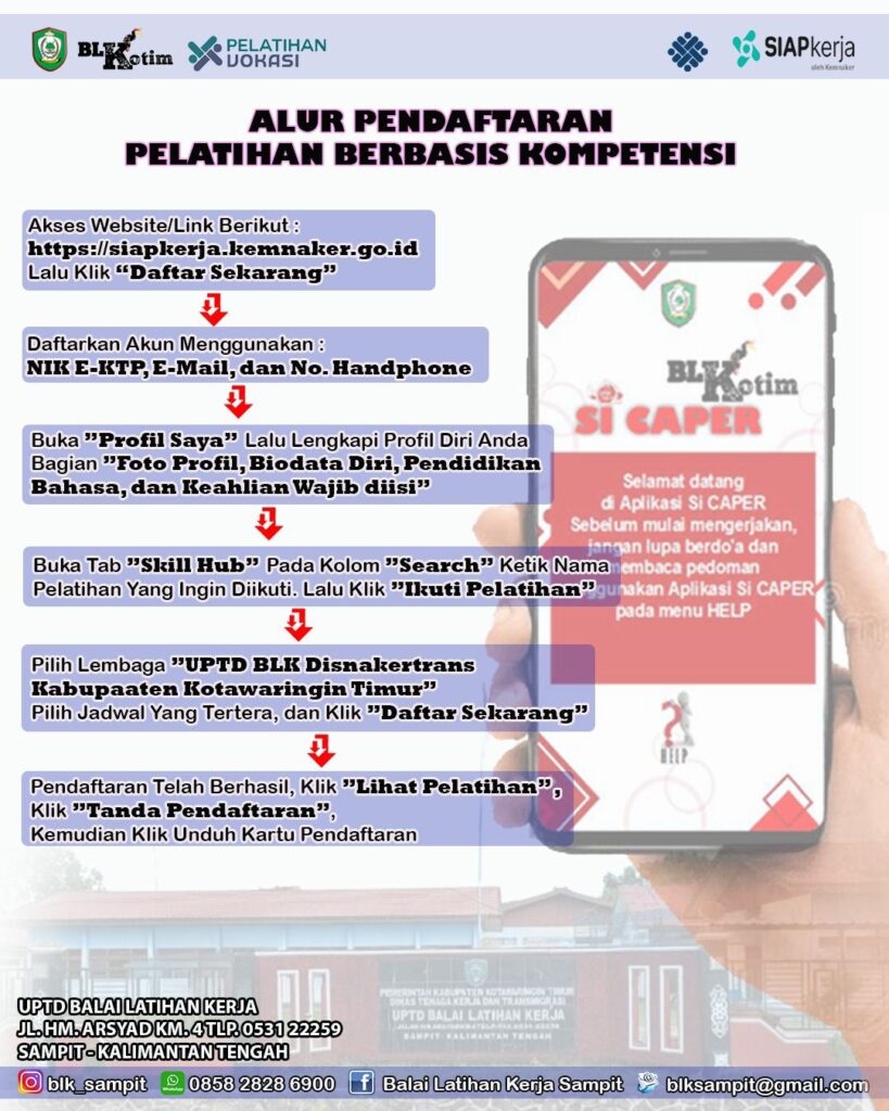 SI CAPER : Merupakn Aplikasi berbasis android yang di gunakan untuk memudahkan proses seleksi tertulis bagi calon peserta pelatihan berbasis kompetensi di UPTD Balai Latihan Kerja (BLK) Dinas Tenaga Kerja dan Transmigrasi Kab. KOTIM